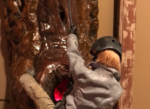 The Hollow stands 6 feet tall and it's very abstract. This represents the perils of what you may come across when least expecting.The accents on the door are real. Brass mail slot from 1908, glass door knob, skeleton key and rusted kick plate are a few examples. Small creature was my imagination and when you lift the mail slot, it reveals the mother's eye looking a you. The small creature features eyes I ordered from a Russian taxidermist. This was a fun piece to create.